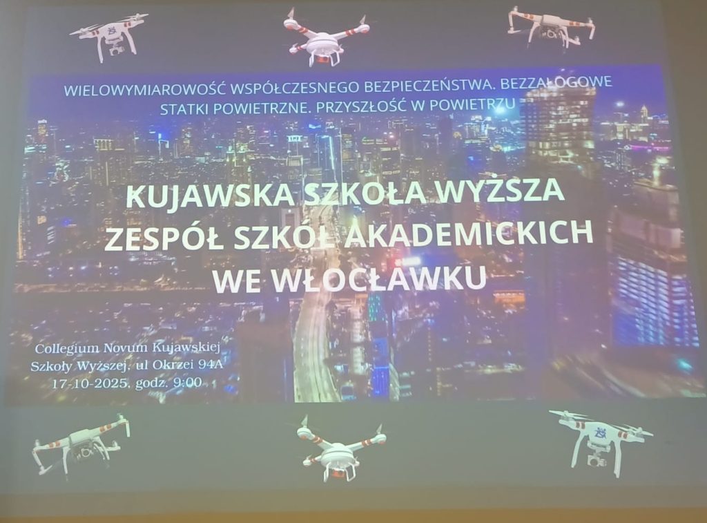 Wykładowcy Bydgoskiej Szkoły Wyższej – prof. BSW Justyna Ożóg, prof. BSW dr Włodzimierz Majewski oraz prof. BSW dr hab. inż. Julian Polański uczestniczą w konferencji naukowej pn. „Wielowymiarowość współczesnego bezpieczeństwa. Bezzałogowe statki powietrzne. Przyszłość w powietrzu” organizowanej przez Kujawską Szkołę Wyższą we Włocławku.