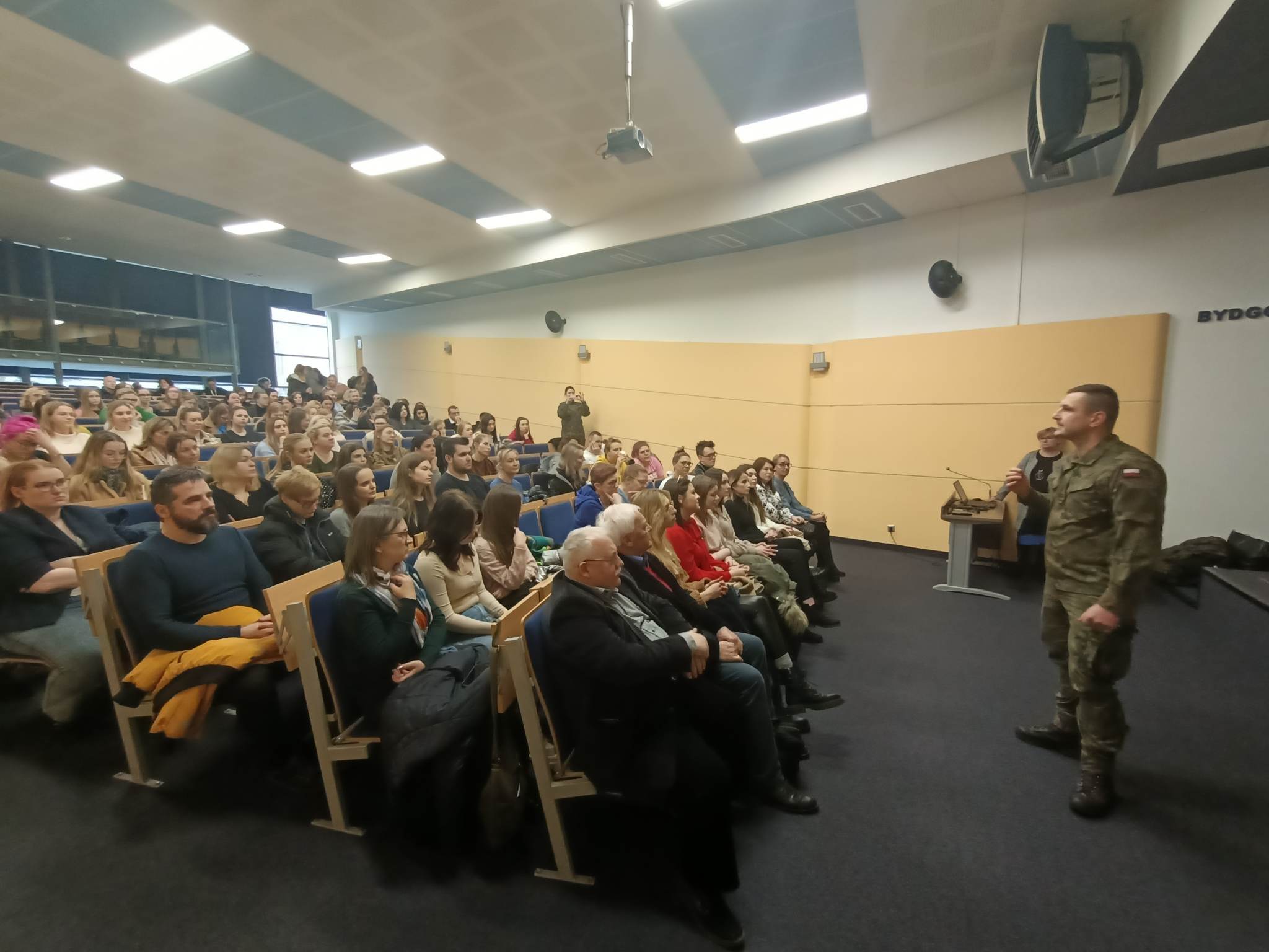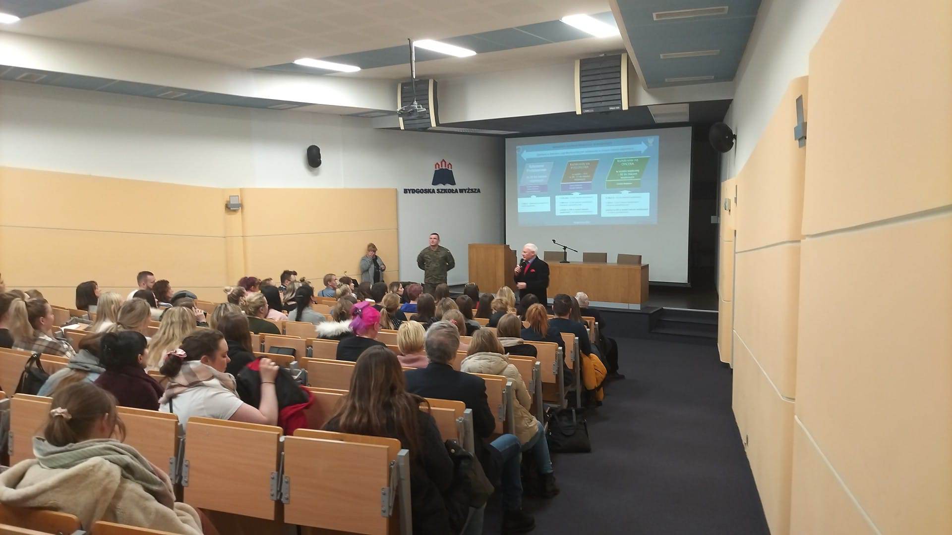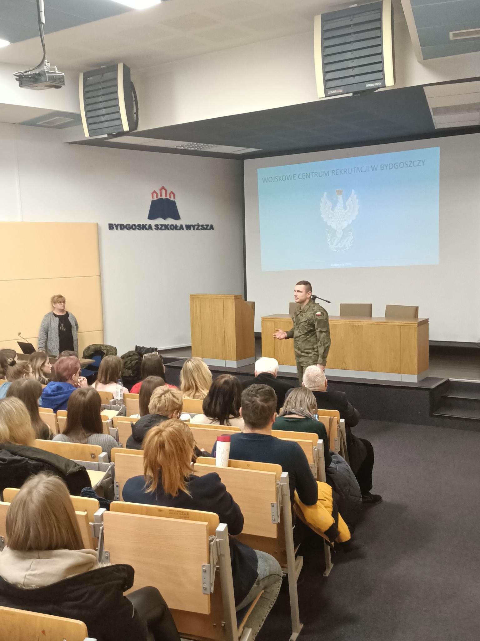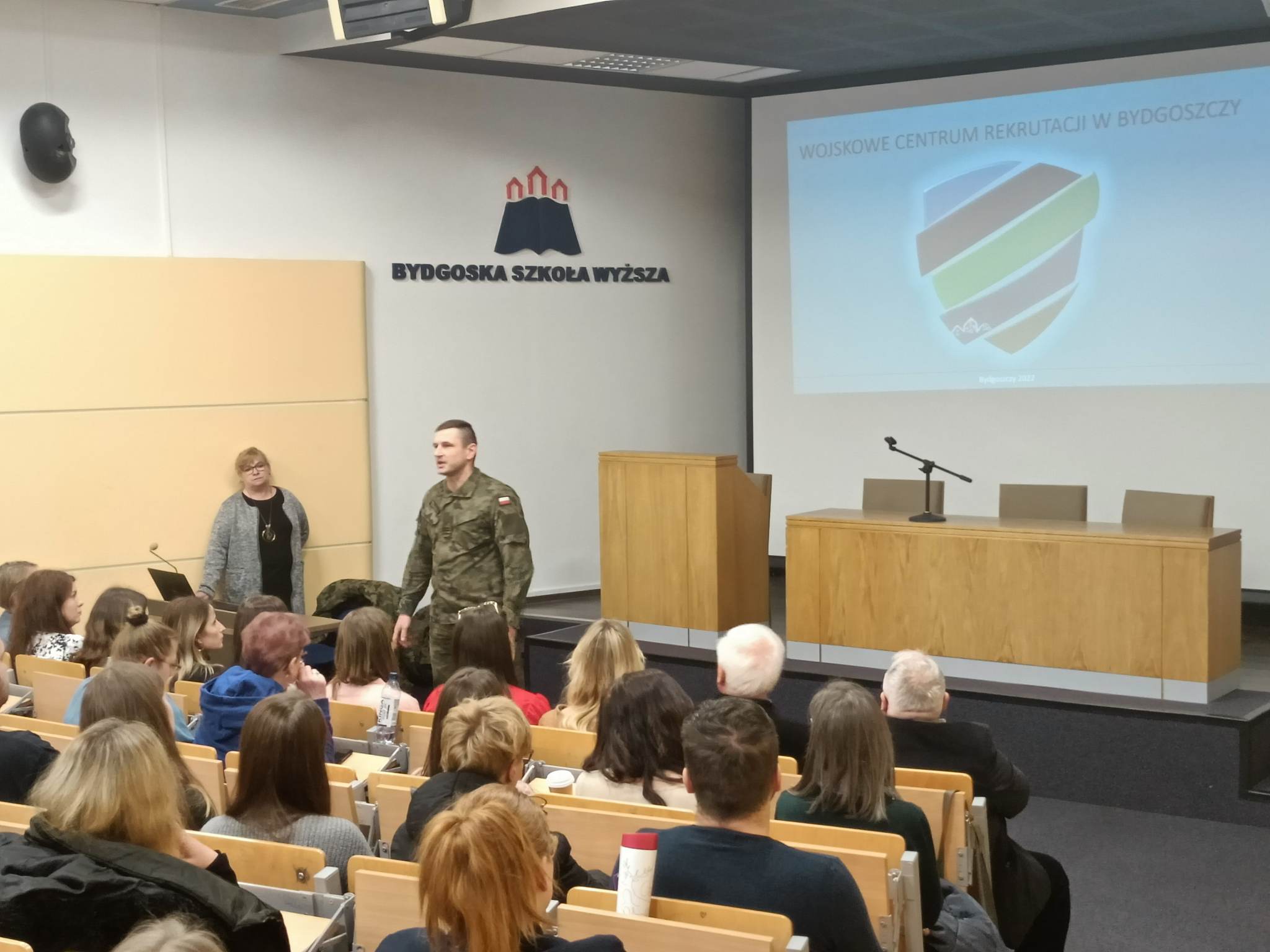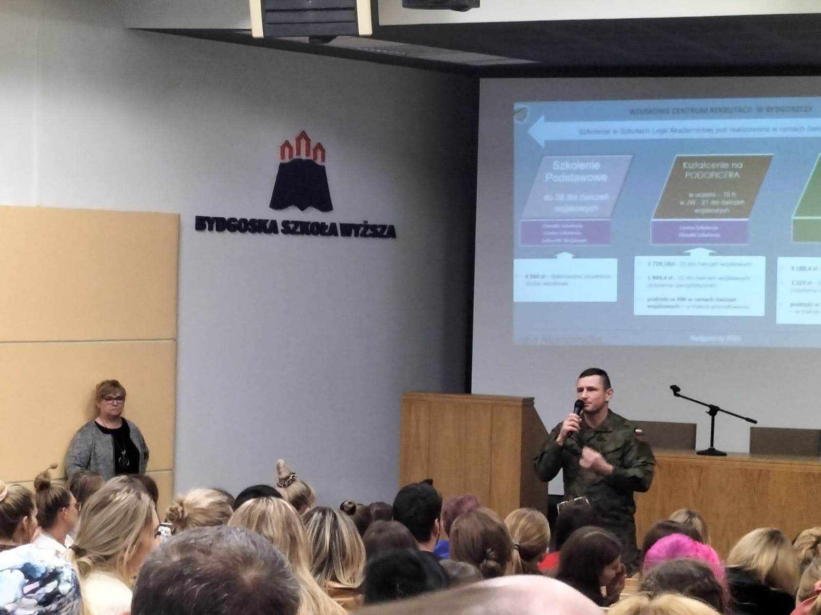 11 lutego 2023 r. w Auli Bydgoskiej Szkoły Wyższej, studenci i wykładowcy uczelni uczestniczyli w spotkaniu z Szefem Wydziału Rekrutacji WCR w Bydgoszczy mjr. Bogdanem Lewandowskim. Miało ono na celu przedstawienie informacji nt. projektu pn. Szkoła Legii Akademickiej, jak również zasad przeprowadzania ochotniczych szkoleń wojskowych studentów i absolwentów studiów.